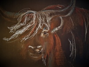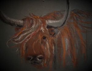 2019op een donkere ondergrond geschilderd. de rust die deze hooglander uitstraalt heb ik hiermee gevangen.